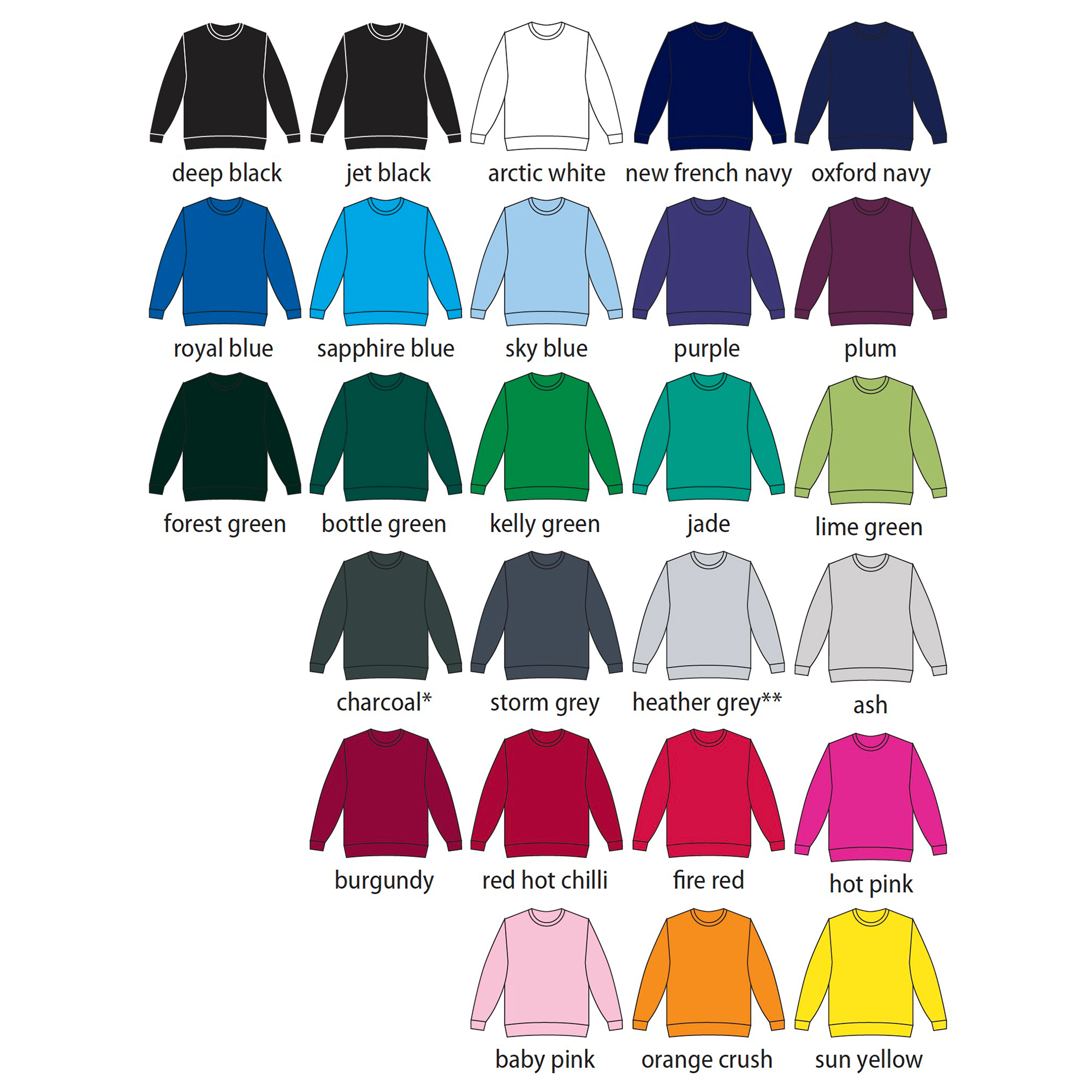 **Heather grey 75% cotton/25% polyester.